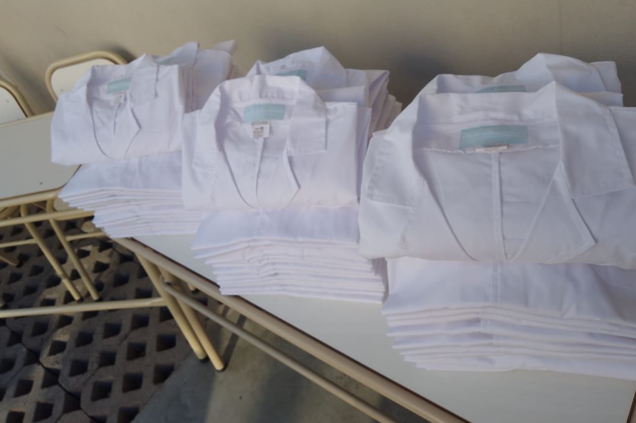 El Ministro explicó que se trata de "un trabajo coordinado de todo el equipo del Gobernador, porque en este acto estamos anunciando la entrega de 10 mil guardapolvos a las escuelas bonaerenses completamente gratuitos", los cuales serán "distribuidos en 4 municipios, para fin de año terminar la producción de otros 10 mil que van a más ciudades".