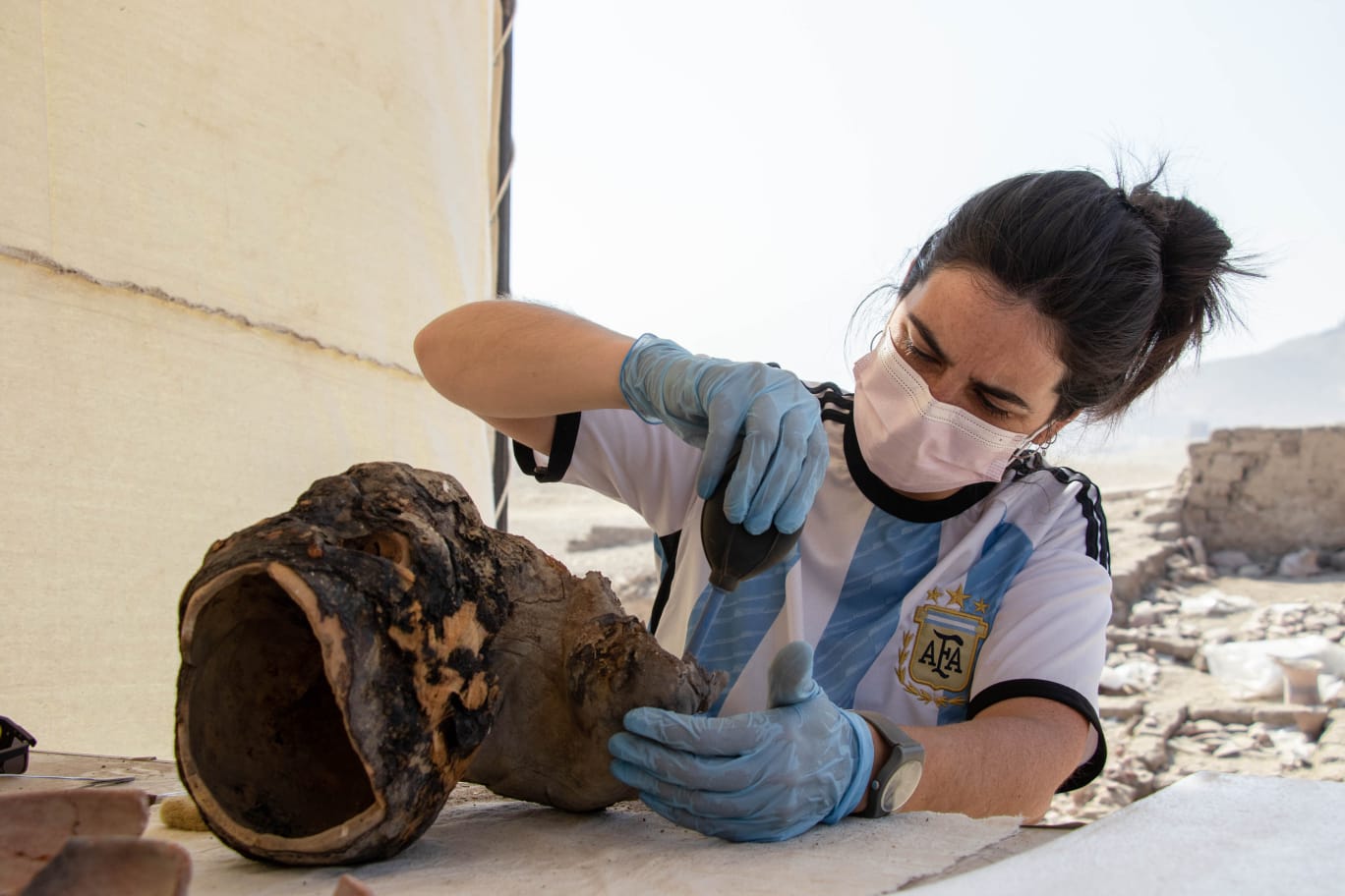 Seguido contó que “las jornadas de trabajo empiezan muy temprano. A las 6 de la mañana ya estamos en el sitio y trabajamos alrededor de 6 o 7 hs. por día a pleno rayo del sol. Después, hay un gazebo donde está el equipo de clasificación que hace su trabajo ahí. Y otros dos más. En uno está el equipo de conservación y el equipo de fotografía y en el otro las arqueólogas”.